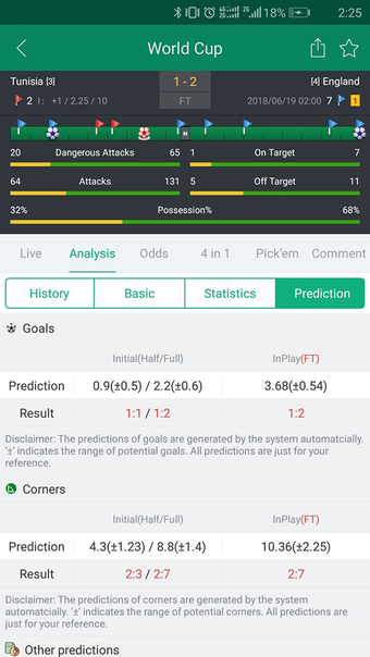 Maç tarih ve saatini ve sonucunu (Tie, Win, Draw, Mağlubiyet, Gol) vererek tahmin yapabilirsiniz. Ekibimiz oyun istatistiklerini analiz ederek futbol tahminlerini verir ve ayrıca futbol maçlarının en iyi tahminlerini verir.